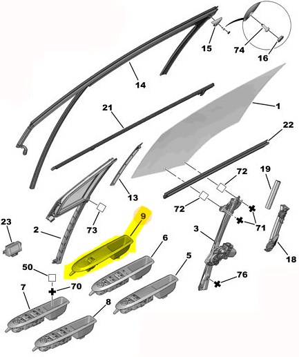 Sağ Ön Kapı Cam Düğmesi 6554E7